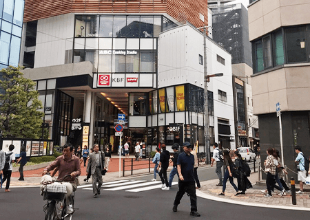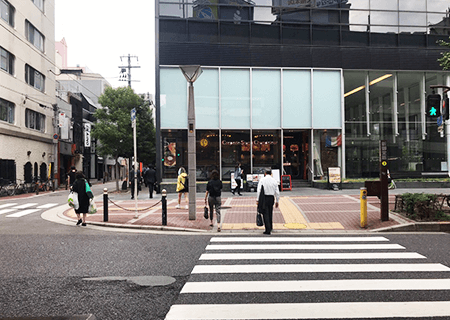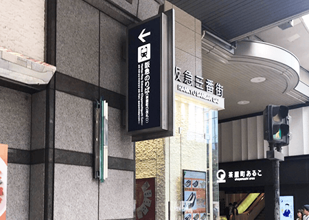 1.阪急三番街 茶屋町口改札口を出を出て、NU茶屋町の交差点を右折